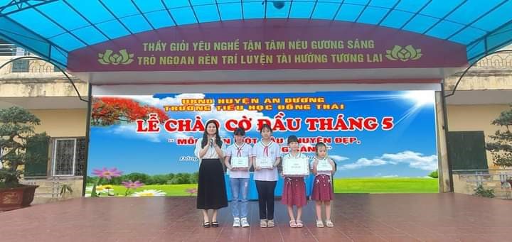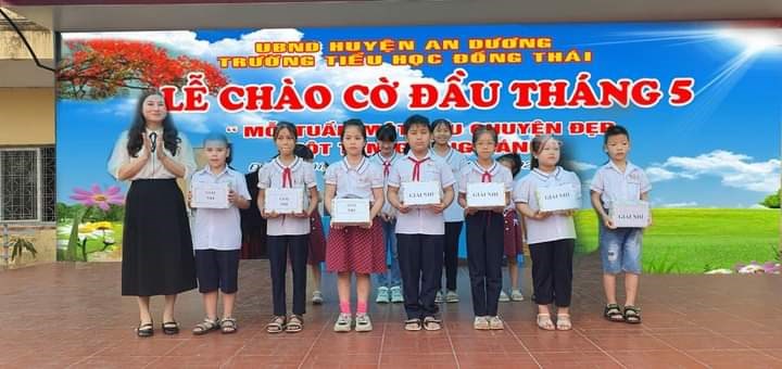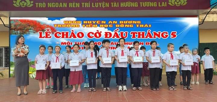 Sáng ngày 8/5/2023, Trường TH Đồng Thái tổ chức lễ chào cờ đầu tháng 5 với chủ đề “Mỗi tuần một câu chuyện đẹp, một tấm gương sáng”. Nội dung buổi chào cờ đã đánh giá kết quả hoạt động tháng 4, biểu dương những cá nhân, tập thể có thành tích cao trong học tập, rèn luyện và tích cực trong phong trào “ Mỗi tuần một câu chuyện đẹp, một tấm gương sáng”. Triển khai hoạt động tháng 5, phát động phong trào thi đua chào mừng 68 năm ngày Hải Phòng giải phóng 13/5, 82 năm ngày thành lập Đội TNTP Hồ Chí Minh 15/5, 133 năm ngày sinh nhật Bác 19/5. Hưởng ứng lễ hội hoa Phượng đỏ năm 2023, 20 năm ngày tái thành lập huyện An Dương.