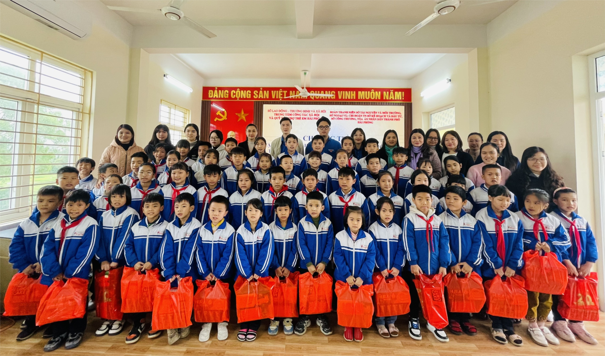 Thông qua kết nối của Chi đoàn Trung tâm Công tác xã hội và Quỹ Bảo trợ trẻ em Hải Phòng, chiều ngày 01/3/2024, Đoàn thanh niên Sở Tài nguyên và Môi trường, Sở Ngoại vụ; Chi đoàn thanh niên Sở Kế hoạch và Đầu tư, Sở Công Thương và Tòa Án nhân dân thành phố Hải Phòng trao tặng 55 suất quà cho 55 em học sinh có hoàn cảnh khó khăn của trường Tiểu học Đồng Thái, mỗi suất quà trị giá 300.000 đồng; tổng giá trị ghi nhận vào Quỹ Bảo trợ trẻ em thành phố là 16.500.000 đồng.