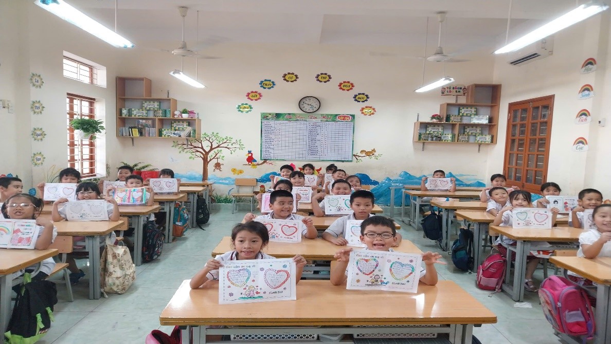 (Tình yêu của các em được gắn trái tim và nụ cười yêu thương)