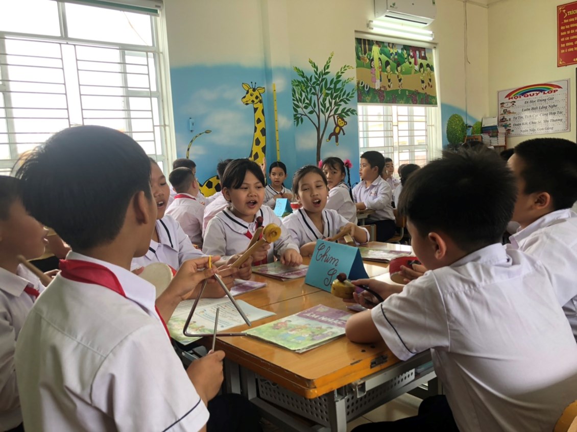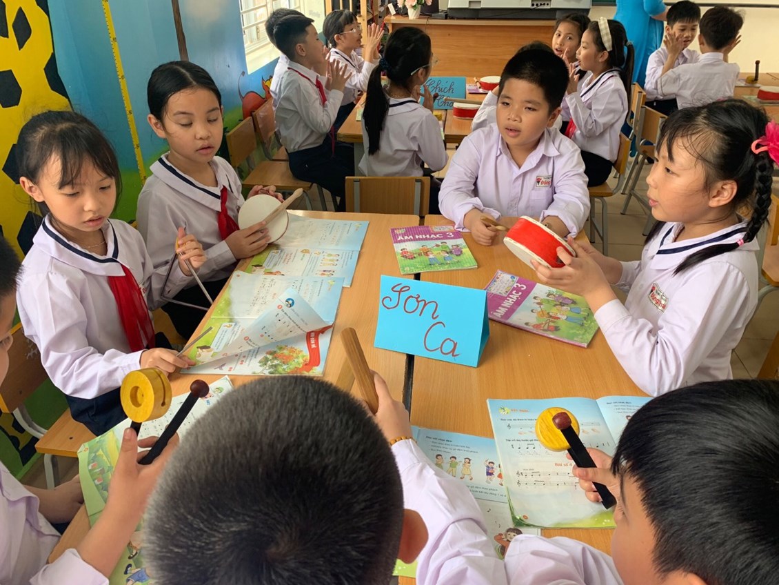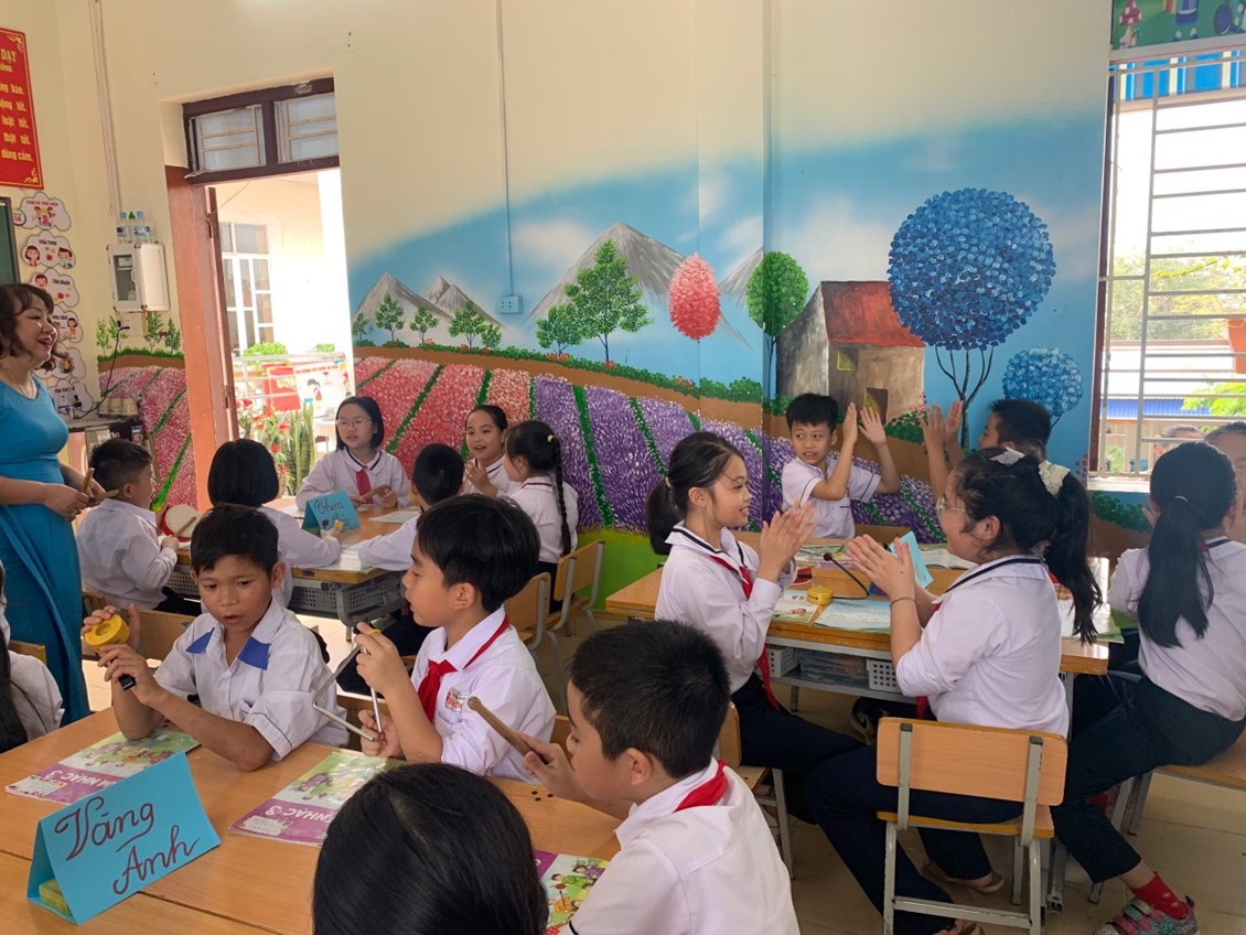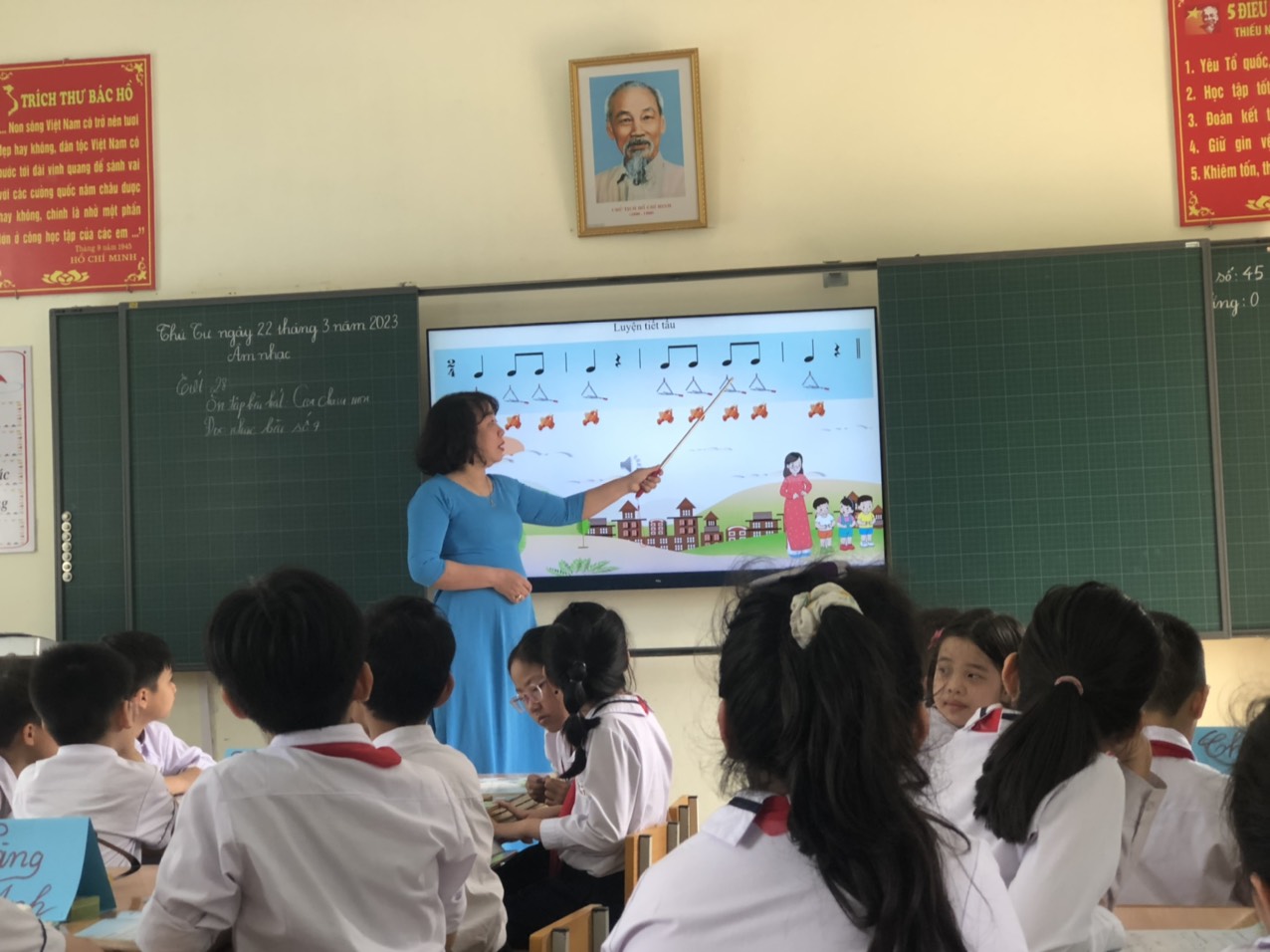 Cô giáo đã vận dụng linh hoạt, sáng tạo các phương pháp, hình thức tổ chức dạy học giúp học sinh tự khám phá, chiếm lĩnh và nắm vững kiến thức, qua đó phát huy tính chủ động, tích cực của mỗi cá nhân. Học sinh được tham gia các hoạt động học tập phong phú, được sử dụng các nhạc cụ âm nhạc đa dạng, tự tin, mạnh dạn bày tỏ ý kiến, tích cực hợp tác với các bạn. Bằng những hình ảnh, giai điệu, lời ca, cô đã khéo léo liên hệ thực tế, giáo dục cho HS tình yêu âm nhạc, biết yêu quý và bảo vệ thiên nhiên.