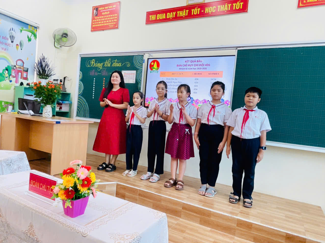 Chiều ngày 15 tháng 10 năm 2025, tại lớp học thân quen của 4D6 – Trường Tiểu học Đồng Thái, một không khí trang trọng mà ấm áp đã lan tỏa khi Đại hội Chi đội chính thức diễn ra. Đại hội không chỉ là dịp để tập thể lớp nhìn lại những chặng đường đã đi qua, mà còn mở ra một hành trình mới với bao hy vọng và quyết tâm.