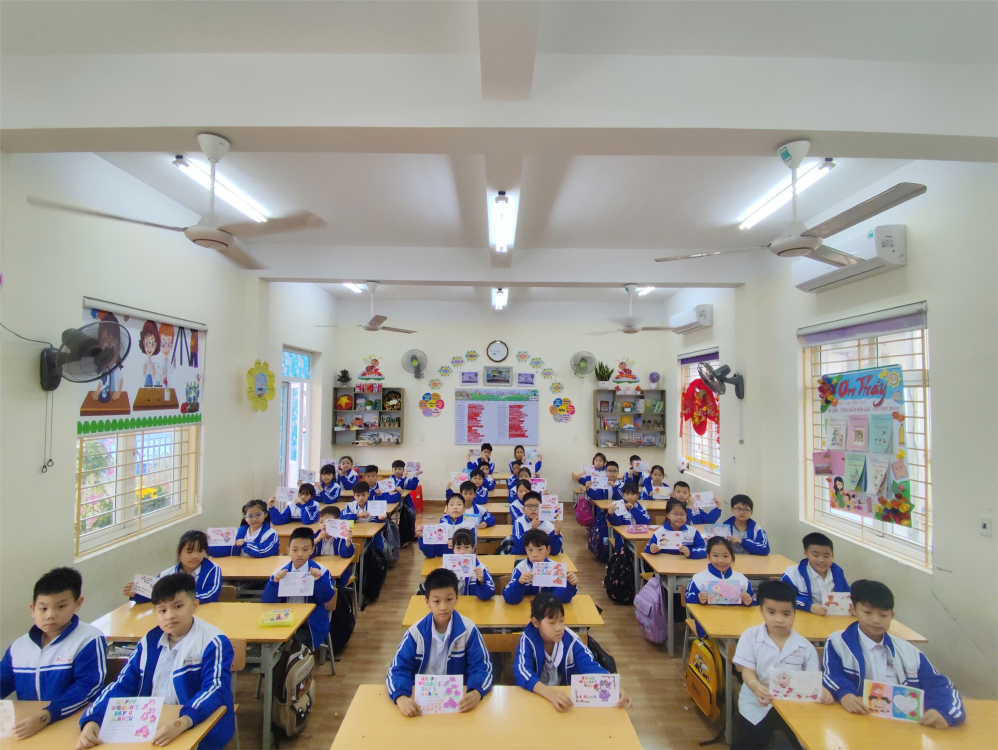 Trong giờ học đầy hào hứng, các em đã tự tay làm những tấm bưu thiếp xinh xắn, trang trí bằng nhiều màu sắc rực rỡ cùng những lời chúc ngọt ngào gửi tới bà, mẹ và cô giáo. Mỗi tấm thiệp tuy nhỏ nhưng chứa đựng biết bao tình cảm yêu thương, sự biết ơn và lòng kính trọng của các em.