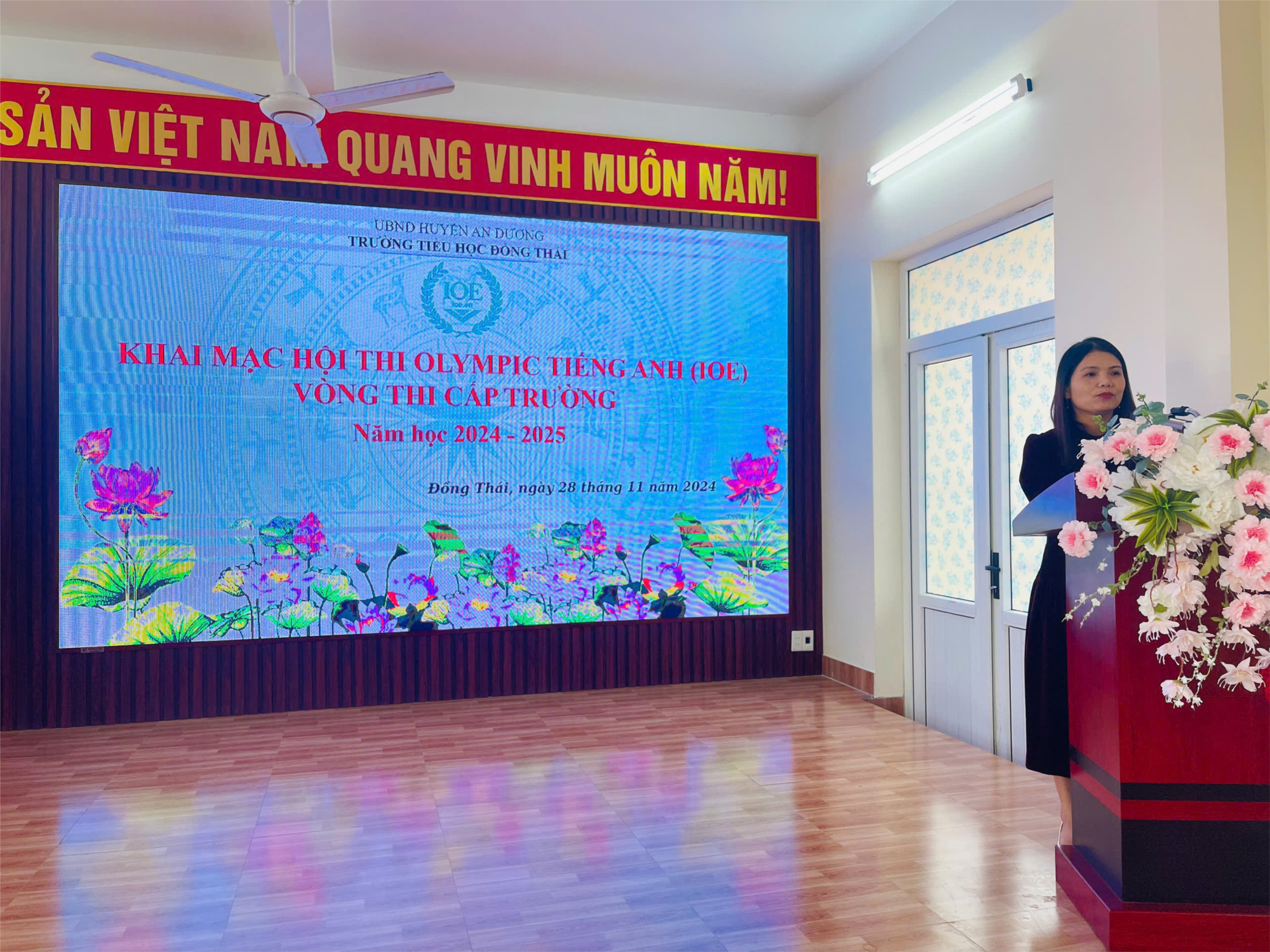 * Sáng nay 28/11/2024, trường Tiểu học Đồng Thái tổ chức khai mạc cuộc thi Olympic tiếng Anh (IOE) trên Internet năm học 2024-2025 vòng loại cấp trường. Với số lượng 106 HS tham gia đến từ các em HS yêu thích môn Tiếng Anh của các khối lớp 3, 4,5; vượt qua 15 vòng tự luyện để đủ điều kiện của Ban tổ chức dự thi vòng loại cấp trường. Các em sẽ tham gia các ca thi theo khung thời gian quy định.