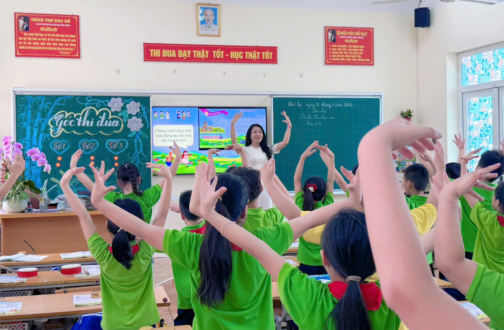 Các em được luyện hát đúng giai điệu, thuộc lời ca và thể hiện sắc thái vui tươi, trong sáng của bài hát. Thông qua các hoạt động như hát theo nhóm, cá nhân và kết hợp vận động phụ họa, tiết học trở nên sinh động và đầy hứng khởi.