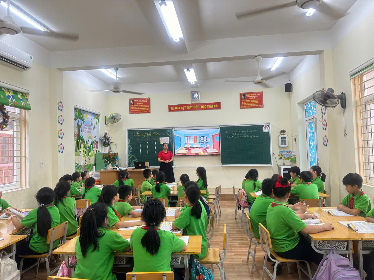 Trong tiết học, cô giáo Cao Thị Thúy đã khéo léo dẫn dắt học sinh tìm hiểu về lịch sử dựng nước của dân tộc gắn liền với truyền thuyết các vua Hùng. Hình ảnh Đền Hùng – nơi thờ phụng Tổ tiên – được cô lồng ghép bằng những tư liệu hình ảnh sinh động, kết hợp kể chuyện, thảo luận nhóm, đã giúp học sinh không chỉ tiếp thu kiến thức mà còn bồi dưỡng niềm tự hào, lòng biết ơn tổ tiên. Đặc biệt, nội dung lễ giỗ Tổ Hùng Vương – ngày hội lớn của toàn dân tộc – được cô tích hợp cùng các yếu tố giáo dục địa phương, nhấn mạnh sự giao thoa giữa giá trị truyền thống chung của cả nước và nét riêng của địa phương học sinh đang sinh sống.