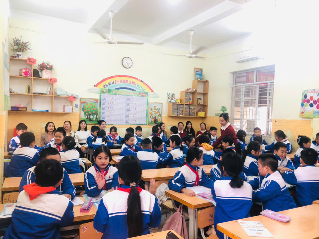 Học sinh lớp 5E2 đã thể hiện tinh thần chủ động, tích cực trong học tập. Các em được tham gia vào các hoạt động nhóm, thảo luận sôi nổi, chia sẻ cách làm bài và cùng nhau tìm ra phương pháp giải hiệu quả nhất. Sự hướng dẫn tận tình của cô Thùy Dung đã giúp học sinh phát hiện lỗi trong bài làm, từ đó rút kinh nghiệm và hoàn thiện kĩ năng làm bài.