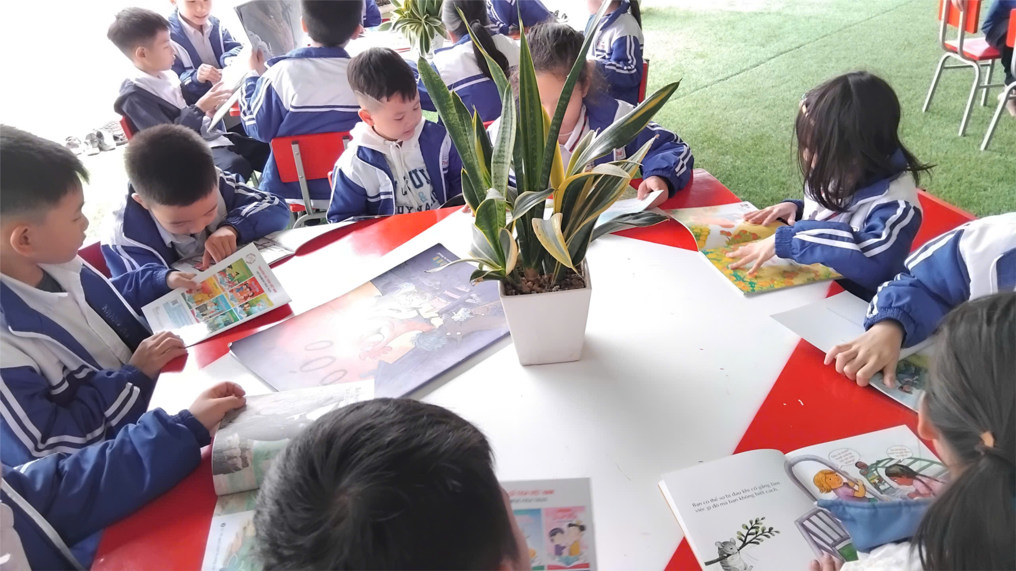 Dưới những tán cây xanh mát, trong không gian mở gần gũi với thiên nhiên, các em được tự tay lựa chọn những cuốn sách phù hợp với lứa tuổi như truyện tranh, truyện cổ tích, sách khoa học thiếu nhi, sách kỹ năng sống… Ánh mắt háo hức, những nụ cười rạng rỡ đã tạo nên một bức tranh học tập sinh động, tràn đầy niềm vui đọc sách.