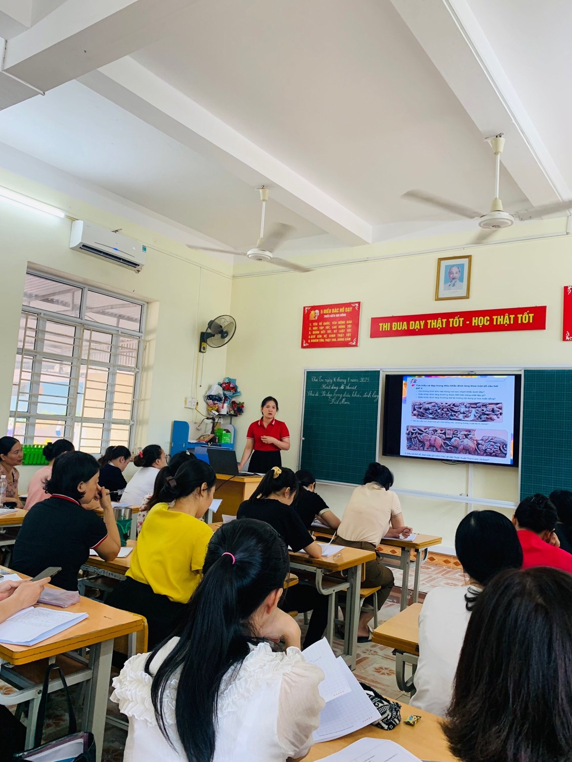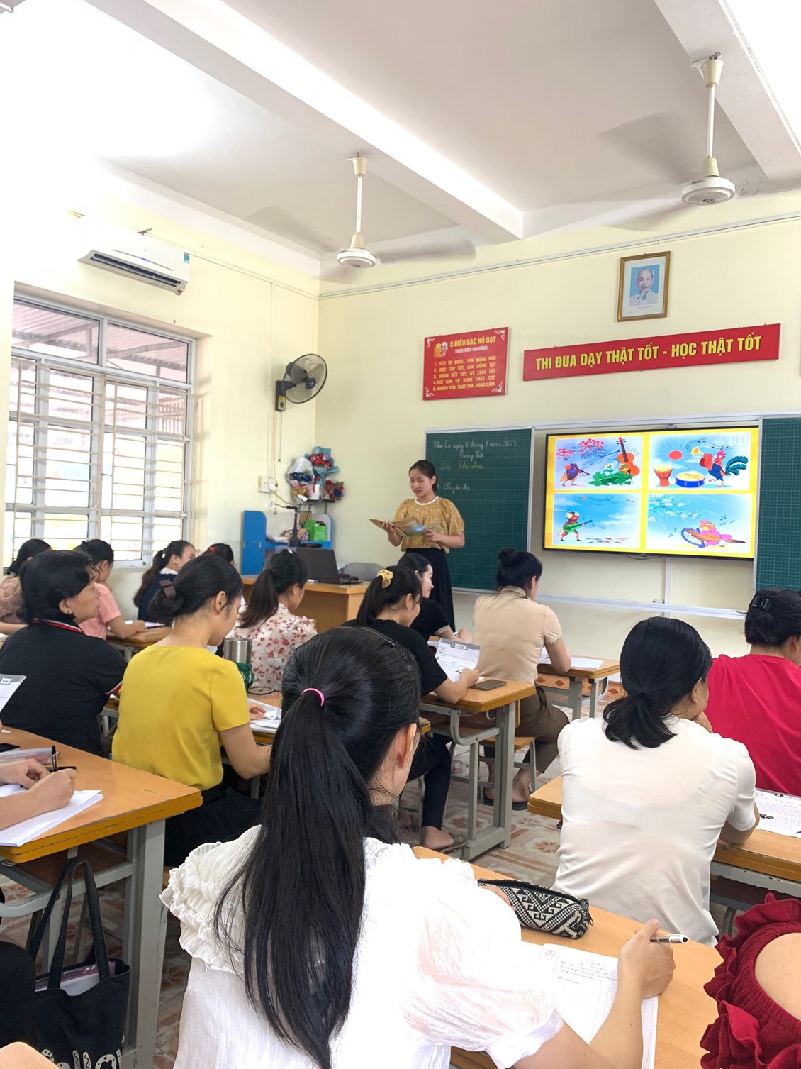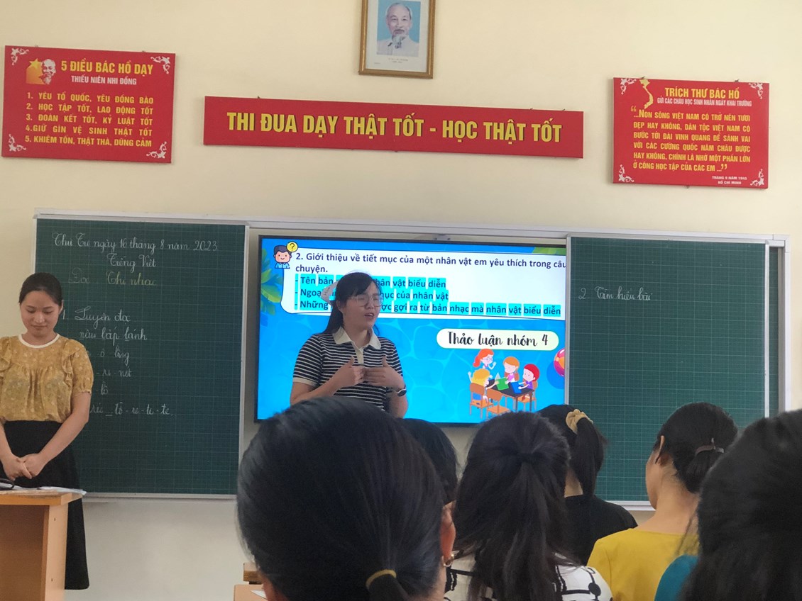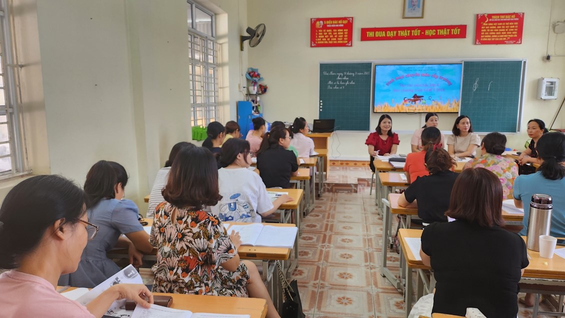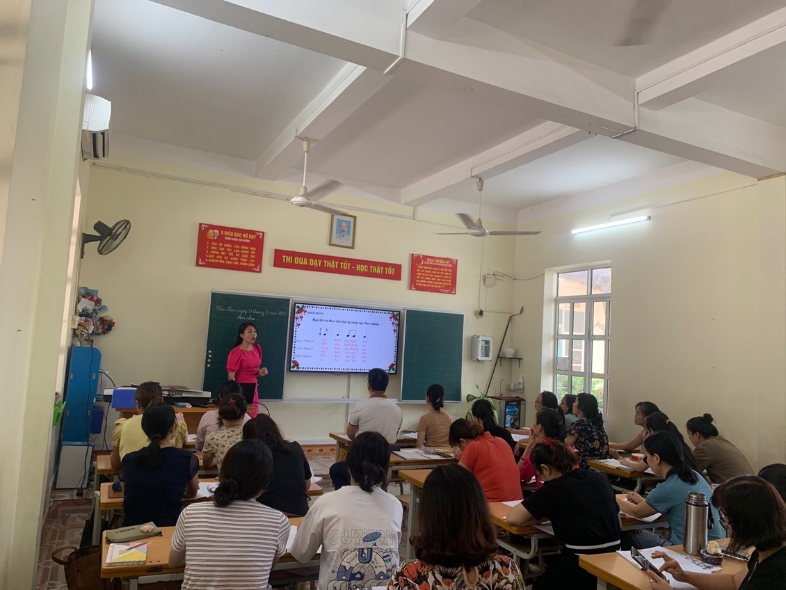 Trong các tiết học thể hiện sự cố gắng của tất cả các thầy cô lên lớp và thầy cô với vai trò học sinh ( tự tin- nhiệt tình). Các hoạt động học tập diễn ra nhẹ nhàng, sôi nổi, giúp học sinh tiếp nhận kiến thức và kĩ năng một cách tự nhiên, hứng thú. Đồng thời phát huy được tính chủ động, sáng tạo, hợp tác và các phẩm chất tốt. Sau dự giờ, là phần hội thảo rút kinh nghiệm diễn ra sôi nổi, cởi mở.