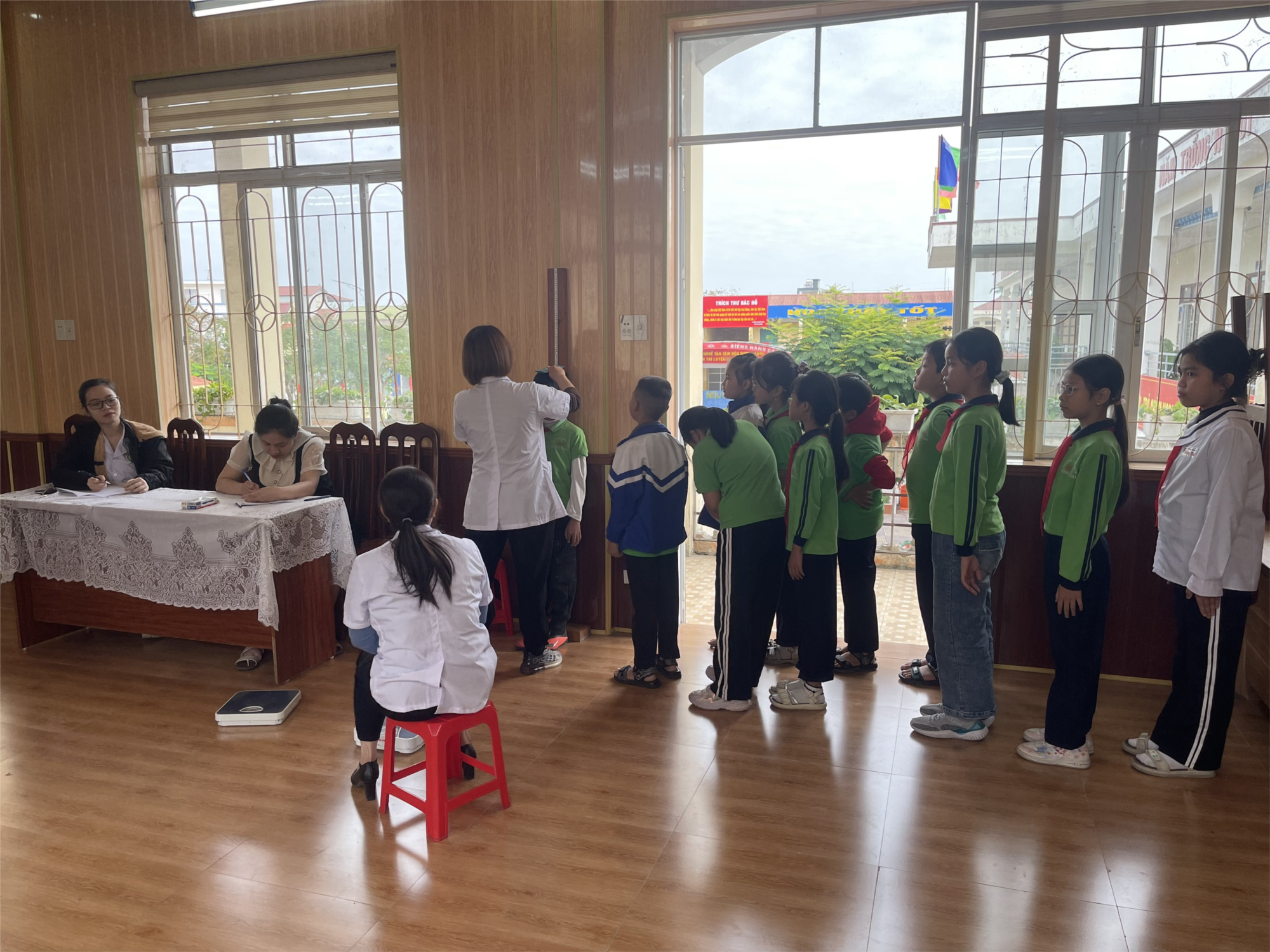 Sau đây là một số hình ảnh khám sức khoẻ của các em trường tiểu học Đồng Thái:
