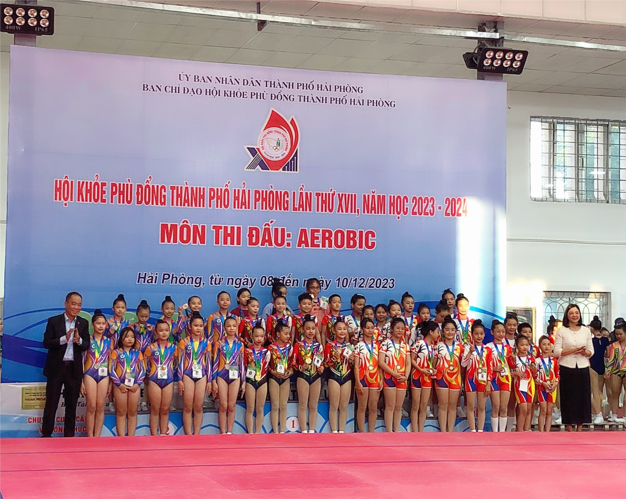 Kết quả: 11 em học sinh đã xuất sắc dành 11 chương Đồng bộ môn Thể dục Aeropic bài tự chọn 8 người dành cho lớp 4-5.