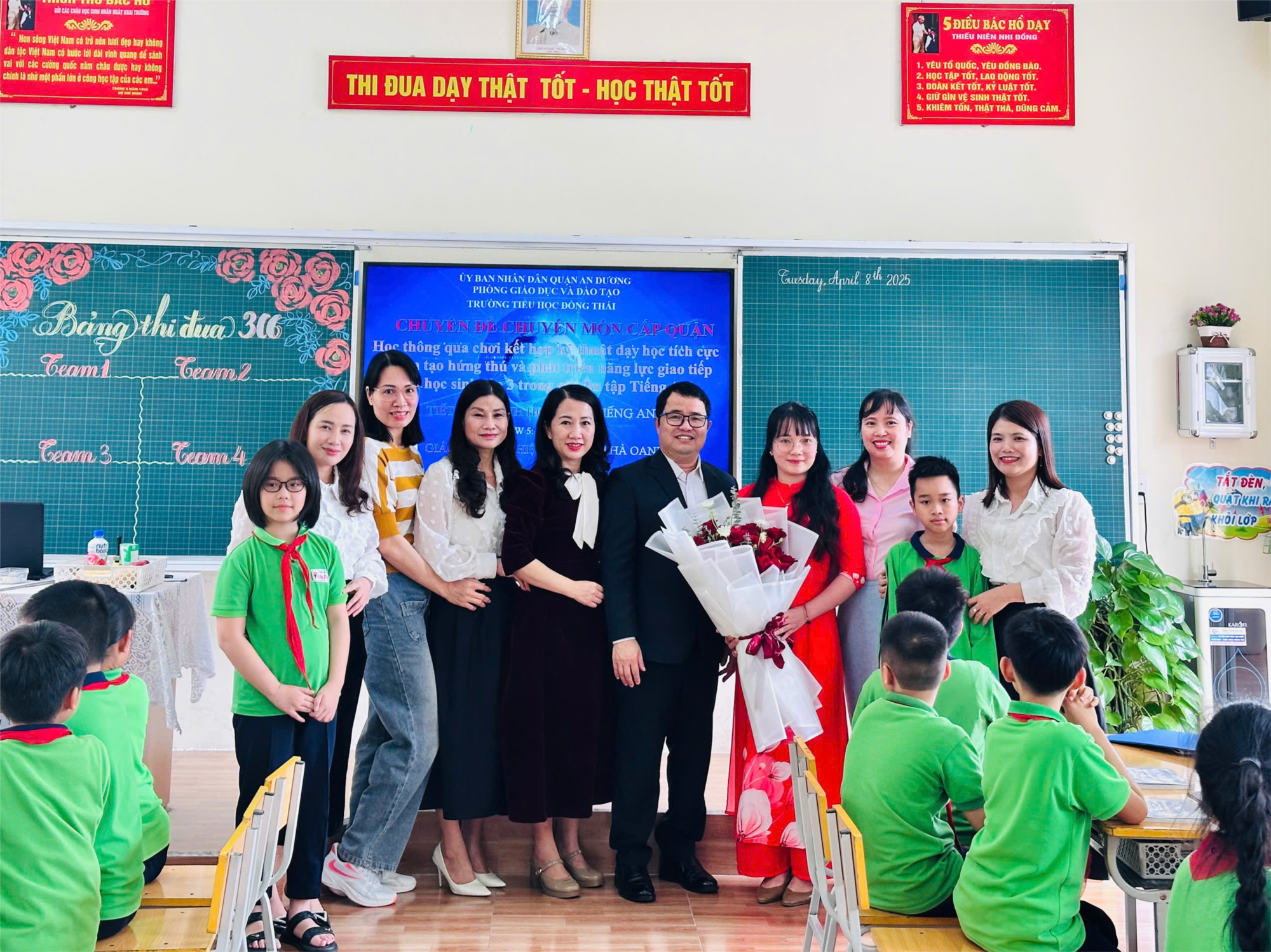 Chiều ngày 8/4/2025 Trường Tiểu học Đồng Thái đã thực hiện thành công chuyên đề chuyên môn cấp quận môn Tiếng Anh với chủ đề: “Học thông qua chơi kết hợp kỹ thuật dạy học tích cực nhằm tạo hứng thú và phát triển năng lực giao tiếp cho học sinh lớp 3 trong giờ ôn tập tiếng Anh.”