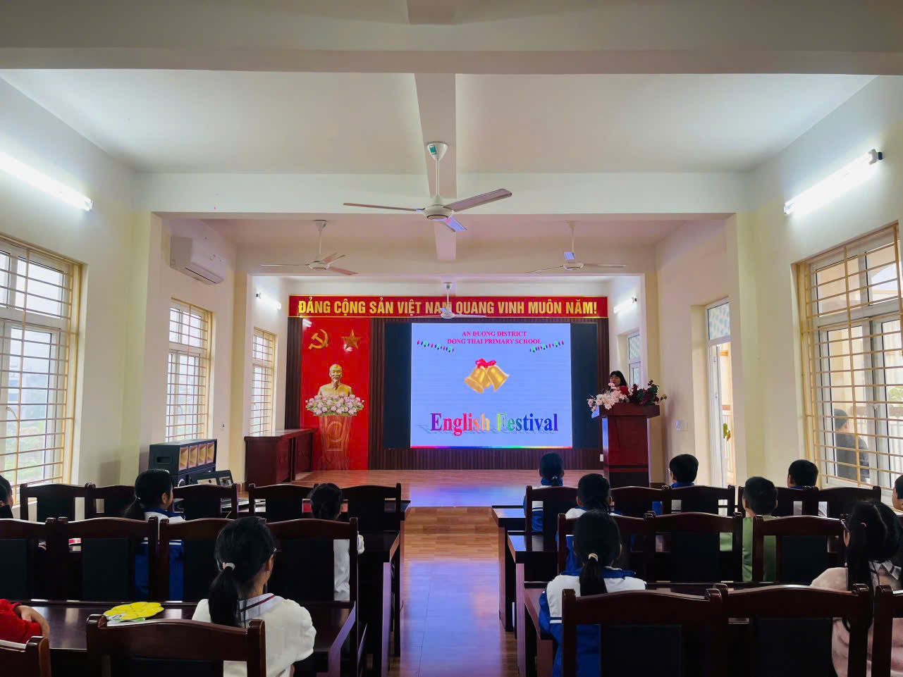 Sáng nay, ngày 26/12/2024, Trường Tiểu học Đồng Thái đã tổ chức thành công Festival Tiếng Anh năm học 2024-2025 dành cho học sinh khối 3, 4 và 5. Sự kiện đặc biệt năm nay được tổ chức dưới hình thức thi Rung Chuông Vàng và là một hoạt động ý nghĩa chào mừng sự kiện thành lập quận An Dương.