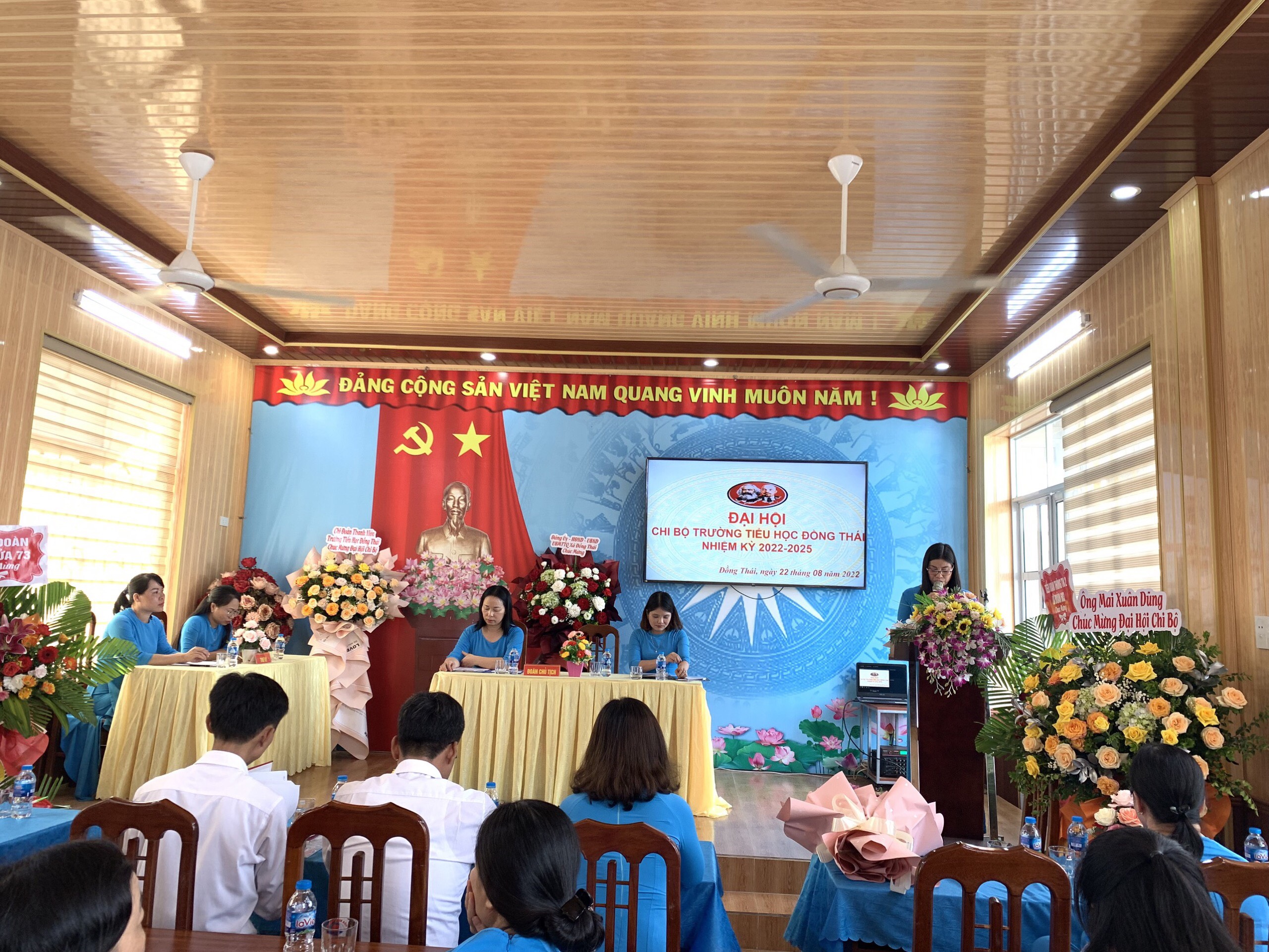 Được sự đồng ý của Ban Thường vụ Đảng uỷ xã Đồng Thái , hôm nay 22/8/2022 , Chi bộ trường Tiểu học Đồng Thái đã tiến hành Đại hội chi bộ nhiệm kỳ 2022-2025, nhằm đánh giá kết quả lãnh đạo, chỉ đạo của chi bộ nhiệm kỳ qua, đề ra phương hướng nhiệm vụ nhiệm kỳ tới và bầu Cấp uỷ chi bộ nhiệm kỳ 2022-2025.